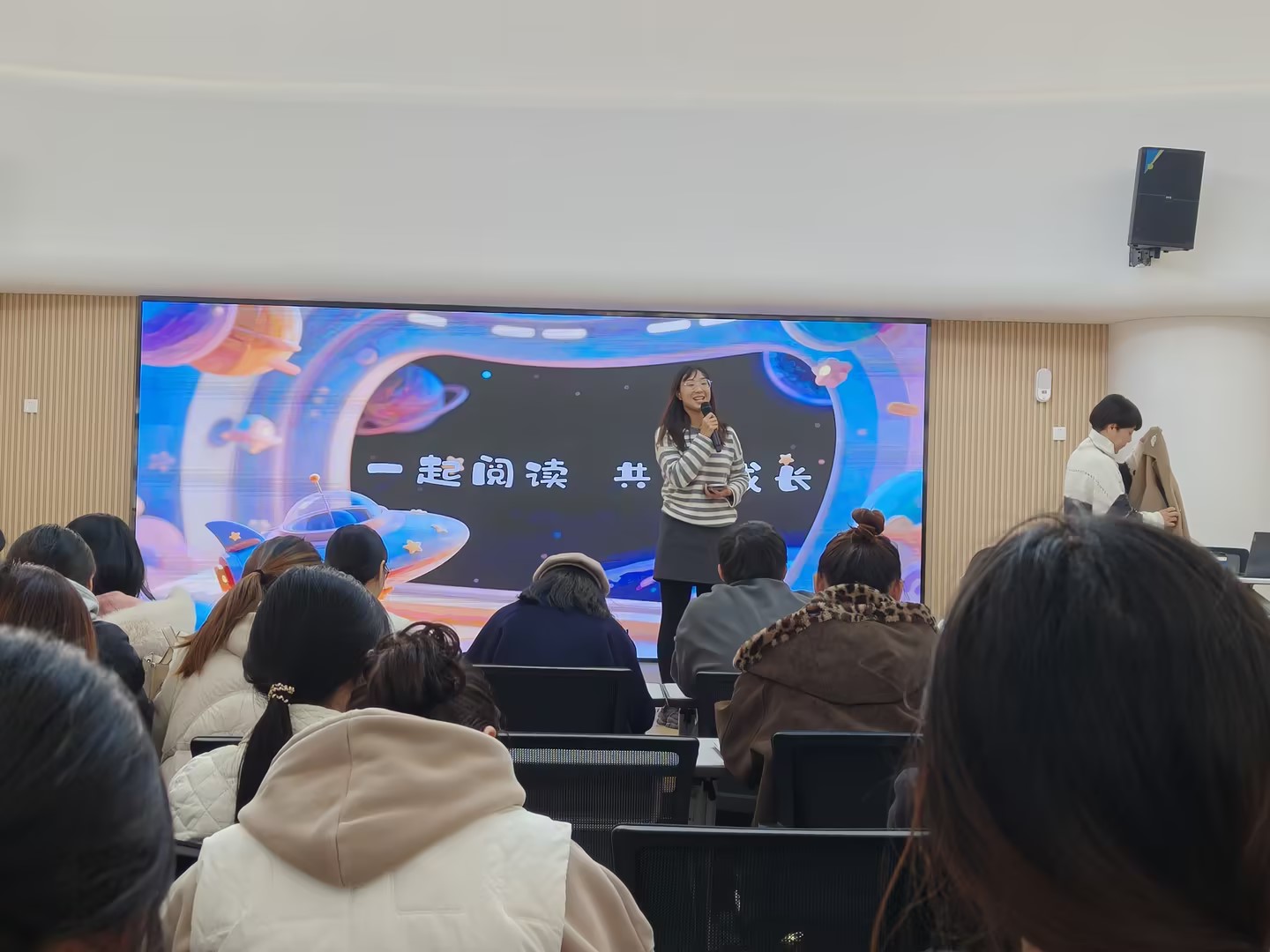 为进一步推动园所间课程实践经验的互学互鉴,助力教师拓宽教育活动设计思路,深化对幼儿语言教学的理解与实践能力,2025年12月1日下午1点,太仓市高新区镇洋幼教中心赴元美幼儿园参加“一起阅读,共同成长”语言活动设计培训,本次培训特邀蒋静老师开展讲座。