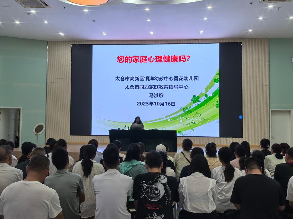 为帮助孩子拥有一个健康的体魄和健康的心理,构建一个心理健康的家庭环境,2025年10月16日14:30,太仓市高新区镇洋幼教中心香花幼儿园邀请同力家庭教育指导中心马洪珍老师为中班组家长们开展“您的家庭心理健康吗”主题讲座,整场讲座时间持续一个小时。