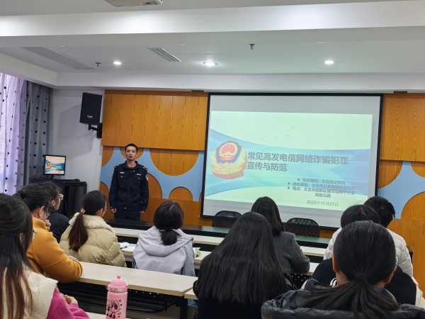 2025年11月21日,太仓市高新区镇洋幼教中心香花幼儿园组织教职工学习常见高发电信网络诈骗犯罪宣传与防范的相关法律。本次由法治副校长秦警官为全体教职工对电信网络诈骗开展安全宣讲,全面提升幼儿园教职工对网络诈骗的防范意识,分辨电信诈骗犯罪的相关知识。
