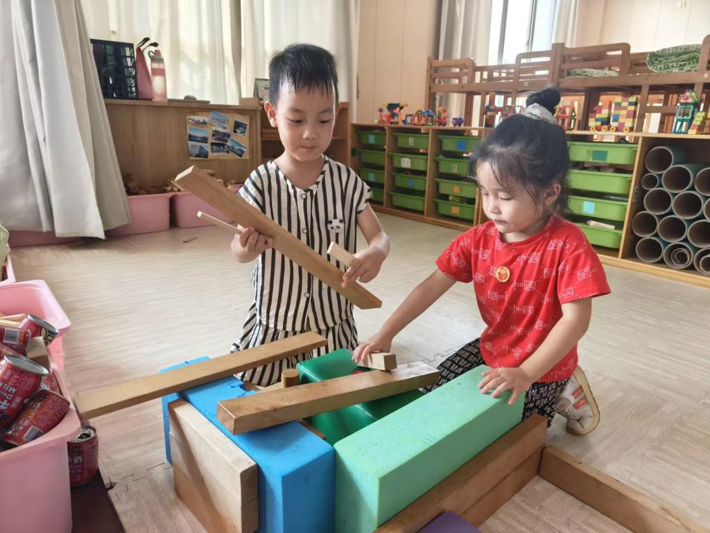 垒高过程中,幼儿的耐心程度以及搭建垒高的平稳度较好。并且在之后初步成型的基础上,幼儿能够根据自己周遭的材料进行丰富与装饰。在游戏讲评环节,鼓励幼儿向集体讲述自己的搭建过程,介绍自己的作品。教师给予一定的鼓励,和幼儿讨论之后的搭建游戏,对幼儿之后的搭建能力提出更进一步的要求。