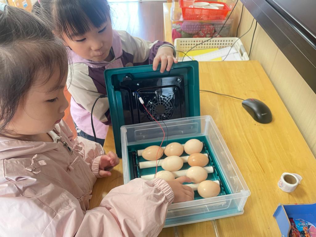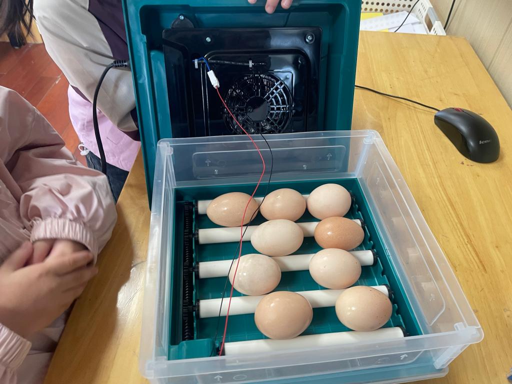 2. 自主甄选受精蛋:幼儿围绕“什么样的蛋能孵出小鸡”展开热烈讨论,自主制定选蛋标准:“蛋要完整,没有裂缝”“用手电筒照能看到里面有黑影”“掂起来要比普通鸡蛋重一点”。随后,幼儿分组进行实践操作,用手电筒照蛋、用天平称重,对收集到的鸡蛋进行逐一筛选,并认真记录选蛋过程与结果,最终自主确定10枚孵化用蛋。在选蛋过程中,幼儿学会了按照既定标准开展工作,自主判断与决策能力得到提升。
