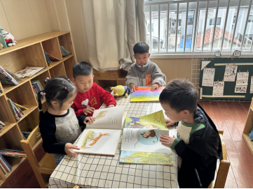 今天的阅读区开始后,珂珂和熠熠结伴进入阅读区,共同挑选了一本绘本《猜猜我有多爱你》。两人并排坐着,轮流翻页,边看边轻声讨论:“小兔子真可爱!”“它好爱妈妈呀!”珂珂还模仿书中小兔子的动作,张开双臂说:“我这么爱你!”引来同伴的笑声。另一边,辰辰独自坐在角落,专注地翻阅一本关于恐龙的科普绘本。他一边看一边用手指着图片,小声念出恐龙的名字:“霸王龙、三角龙……”当老师走近时,他主动说:“老师,这个恐龙牙齿很尖,它吃肉!”表现出较强的表达欲望和知识积累。陆裕刚开始随意翻书,一页页快速翻动,没有专注看内容。老师轻声提醒:“我们慢慢翻,看看图画里有什么?”随后陪伴他一起读一本《好饿的毛毛虫》,通过提问引导他观察画面细节,如“星期一它吃了什么?”“你发现苹果上有洞吗?”渐渐地,陆裕开始专注观察,并能回答简单问题。珂珂和熠熠的共读行为体现了良好的同伴互动和情感共鸣。他们不仅能理解故事中的情感,还能通过语言和动作进行表达,说明其语言发展和共情能力正在提升。辰辰对科普类图书表现出浓厚兴趣,具备一定的词汇积累和逻辑思维能力。他主动分享知识的行为,反映出较强的自信心和表达意愿。陆裕初期缺乏阅读策略,注意力易分散,但在教师适时介入和引导下,逐渐学会观察画面、回应问题,说明幼儿的阅读习惯可以通过支持性互动逐步培养。根据幼儿兴趣,增加情感类、科普类、绘本故事等多元题材的图书,满足不同发展需求。接下来可以尝试每周安排一次幼儿自主讲故事活动,鼓励幼儿选择喜欢的绘本进行讲述,锻炼语言表达与胆量。