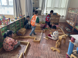 本次建构主题为“长江大桥”。思语作为小组长,率先提出计划:“我们需要建很长的桥面和很高的桥墩。”她和熠熠负责用大型长形木积木搭建桥墩。瑞瑞和然然则用长条积木和平面积木拼接桥面。在尝试将桥面架到桥墩上时,问题出现了:桥面总是不稳,容易滑落。瑞瑞提议:“我们在桥墩上面挖个凹槽,把桥面卡进去!”大家尝试后,发现稳定性增强了。熠熠在搭建第二个桥墩时,主动比较两边高度,说:“这个矮了一点,要再加一层。”然然则负责装饰,在“桥面”两侧用雪花片拼插出路灯,并说:“这样晚上车子就能看见了。”在整个过程中,孩子们有商有量,当出现分歧时,能通过演示和协商达成一致,最终成功搭建了一座稳固且富有细节的“长江大桥”。思语展现了良好的组织者的能力,能把其他幼儿一起协作起来。熠熠表现出出色的观察比较能力和数概念。瑞瑞的“凹槽”提议是本次建构的关键突破,体现了运用物理经验解决实际问题的能力,是高水平思维的体现。然然则为作品增添了美术上的细节和生活内容,使建构作品更具完整性和象征意义。四位幼儿在合作中角色分工明确,沟通顺畅,能够围绕共同目标进行持续性、有思维的建构活动,其协作能力、问题解决能力和空间想象力都得到了有效发展。讲评中我组织幼儿回顾本次成功的搭建经验,重点讨论“我们是怎样让桥面变稳固的?”,将个别幼儿的智慧转化为集体经验。后续可以提供纸板、绳索等新材料,抛出新挑战:“如何建造一座可以通车的‘悬索桥’?”,激发幼儿新一轮的探索和创造。鼓励幼儿在建构前绘制设计图,建构后绘制搭建记录,将具体的操作与抽象的表征结合起来,进一步深化其空间思维和逻辑思维能力。