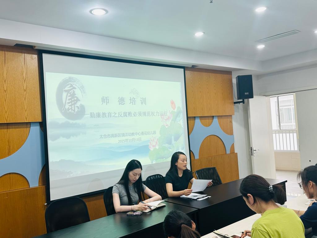 为进一步强化教师廉洁从教意识,筑牢师德师风防线,2025年10月13日下午16:10~16:40太仓市高新区镇洋幼教中心香花幼儿园组织全体教师开展“勤廉教育之——反腐败必须规范权力运行”师德专题培训,切实将勤廉理念融入教育教学全过程。本次活动共计1学时。
