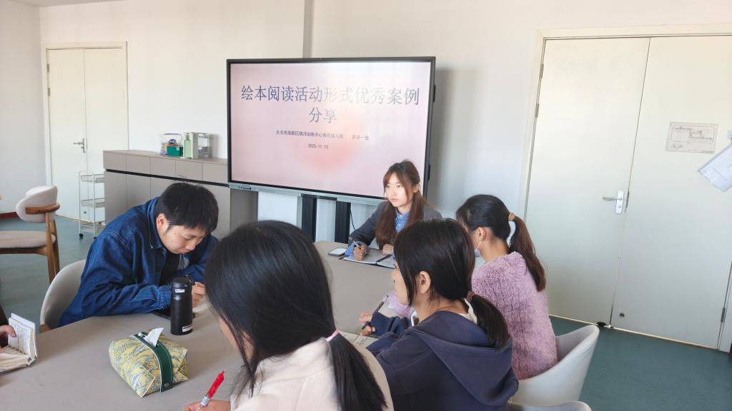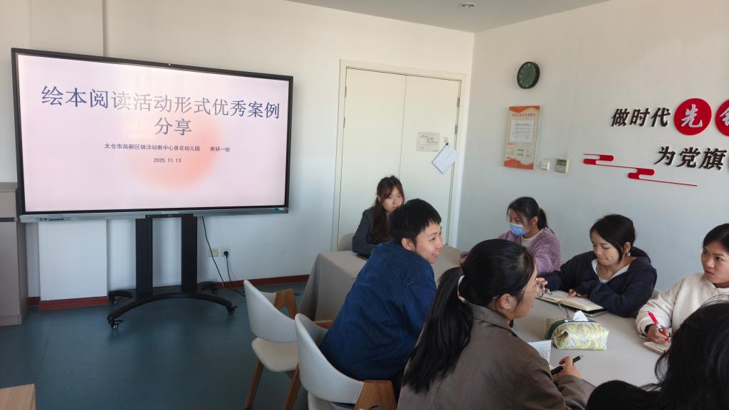 为深入贯彻《3-6岁儿童学习与发展指南》中“以游戏为基本活动”的教育理念,突破绘本阅读传统教学模式的局限,进一步提升活动的趣味性与互动性,11月13日13:00-14:00,太仓市高新区镇洋幼教中心香花幼儿园教研一组在党建室开展了以“绘本阅读活动形式创新设计”为主题的案例分享教研活动。本次活动由谢媛老师主持,教研一组全体教师共同参与,旨在通过优秀案例交流碰撞思维火花,为后续活动方案设计筑牢基础。